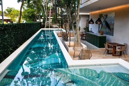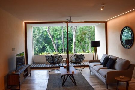 Increíble y espacioso Departamento en Renta en Aldea Zamá126m2Amenidades: - Alberca - Balcón con Vista a la selva- Sala Lounge/Área Común- Barra en Alberca