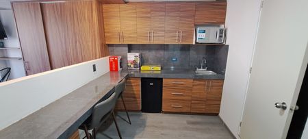 En el primer nivel, listo para estrenar, incluye cama matrimonial, sábanas, cobertor, toalla en el baño, en la cocina tiene horno de microondas, licuadora, cafetera, parrilla eléctrica, vajilla para 3 personas, refrigerador tipo frigobar y todo lo necesario para vivir con comodidad. Totalmente decorado, incluye lámparas, cortinas, etc. Tiene una vista muy bonita a la glorieta del Quijote. La renta incluye servicios como agua, luz, internet y TV por cable, además de limpieza una vez por semana.