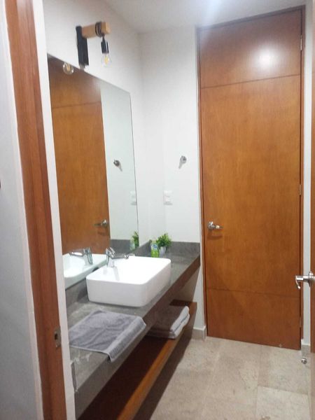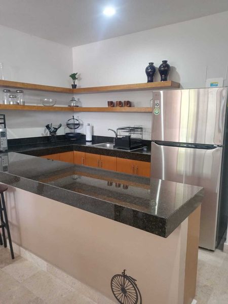 Estrena elegante y tranquilo departamento amueblado cerca de la Gran Plaza, ubicado en primer piso en edificio de 3 niveles.