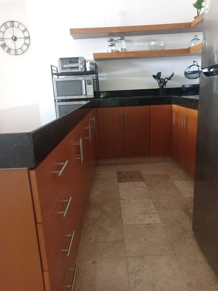 Consta de 2 habitaciones amplias iluminadas con climas en perfecto estado y 2 baños, cocina equipada, sala y comedor.