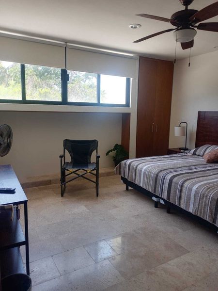 Recamara principal con baño propio y closet vestidor, consta de cama King size, aire acondicionado, almohadas y sabanas, persianas y TV,