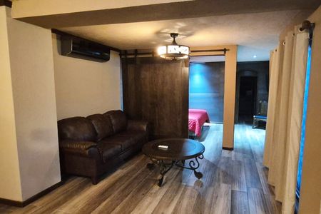 Cuenta con patio y cochera para 1 auto, sala y cocina con área abierta, cocineta equipada, cuarto de lavandería, medio baño y una recámara con baño y vestidor.