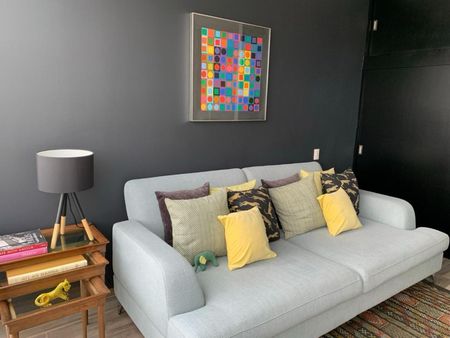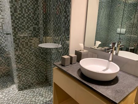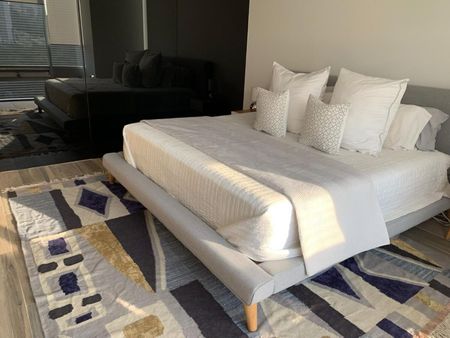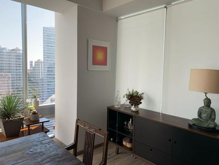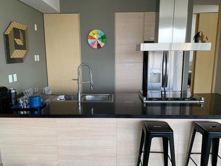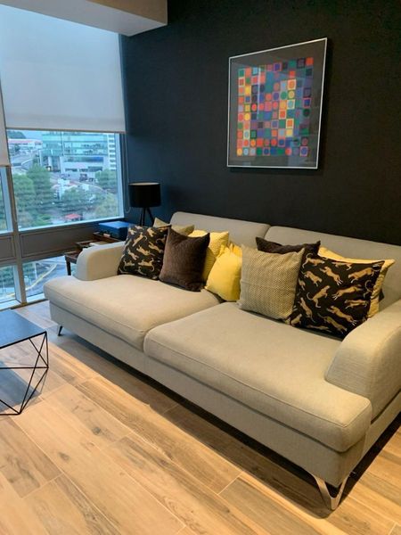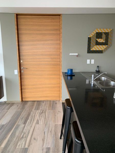 Recámara principal con baño completo, walk in closet, cama king size, black out, 2da recámara o cuarto de tv, closet, no tiene black out, sala, comedor, cocina abierta, área de lavado pequeña con lavadora y secadora, 2 lugares de estacionamiento en batería, recepción 24/7, 2 elevador, gimnasio, vista panorámica, seguridad 24/7, 57 depto en total, mascotas de preferencia no, mantenimiento ($4,750)