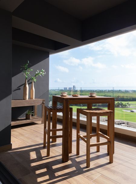 Al entrar te recibe el área social de sala, comedor y cocina, integrados con un balcón y vistas hacia el campo de golf y el mar.
