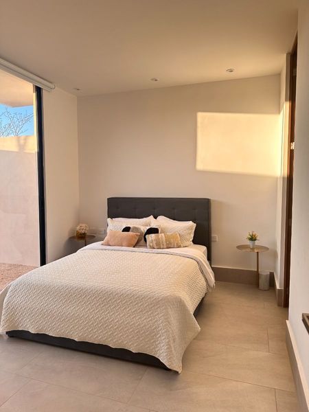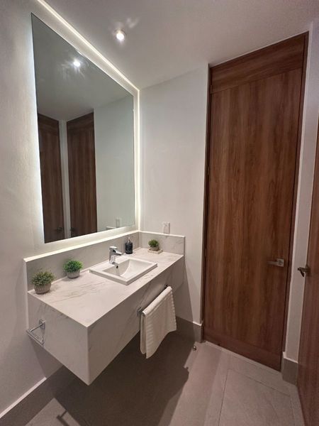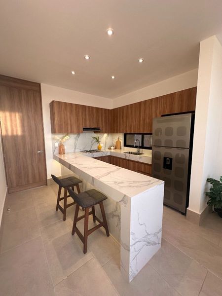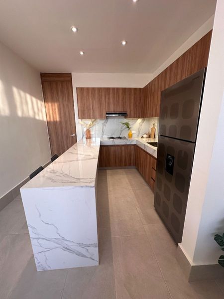 Se entrega con: 3 mini splits + parrilla eléctrica con campana + carpintería en puertas, clósets y cocina + cancel y espejo en baño + calentador eléctrico.