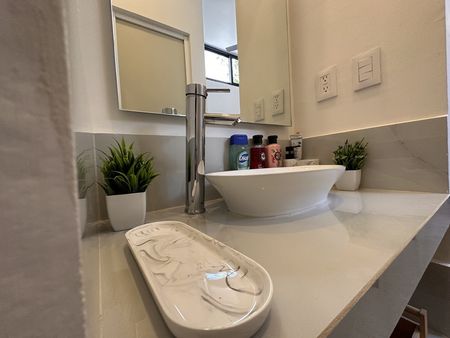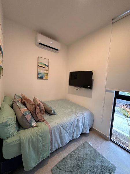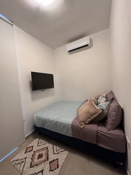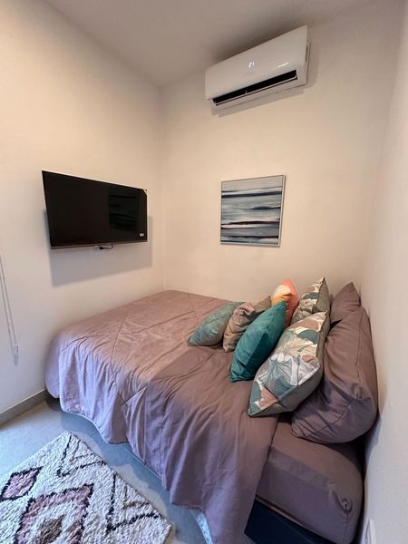 2 recámaras con aire acondiciondo y área de estudio, cama matrimonial, smart tv, aire acondicionado, corinas black out, escritorio y closet