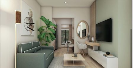 Son departamentos tipo suite EXTERIOR de 1 recámara de 34.37m2+ 1.93 de balcon 1 baño haciendo un total de 36.30m2. con finos acabados de piso laminado veteado de 8mm. porcelanato, barra de granito natual en cocina y vidrio templado en baños.
