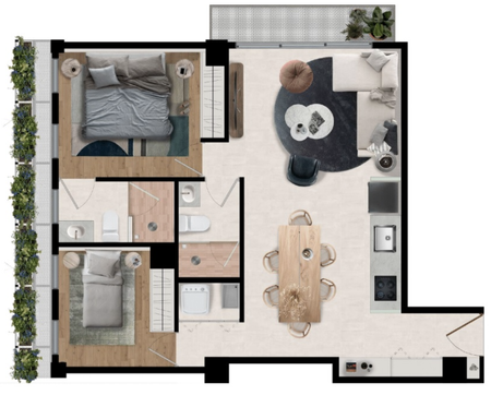 Con solo 23 departamentos, Fauna ofrece espacios exclusivos que se adaptan al estilo de vida contemporáneo, llenos de luz, ventilación natural y terrazas. Su fachada viva contribuye a mejorar el entorno creando a la vez un ambiente más saludable y confortable para sus habitantes.