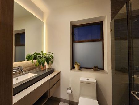 Baño completo que se comparte con área social