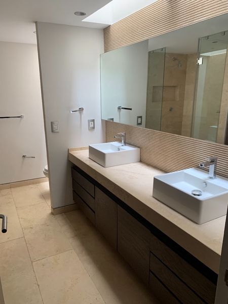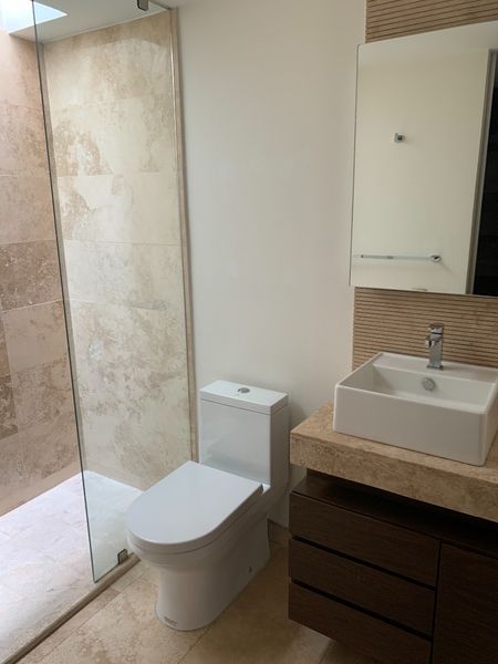 El departamento se distribuye en dos niveles. En el primer piso se encuentran las áreas principales: una amplia sala, un comedor con excelente iluminación natural, una cocina de estilo abierto que invita a la convivencia, y las recámaras, cada una con su propio baño, lo que brinda privacidad y confort a sus habitantes.