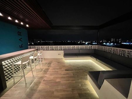 Departamento AMUEBLADO totalmente equipado en Mirari en planta baja ideal para estudiantes, recién casados o profesionistas que quiera vivir cerca del periférico, universidades y centros comerciales. Cuenta con lobby, acceso controlado, elevador y una terraza Roof Top ideal para reuniones, celebraciones o simplemente disfrutar de una maravillosa vista.