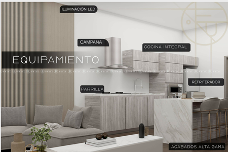 Cocina integral · Campana · Parrilla · Refrigerador · Acabado alta gama · incluye minisplit y boiler · Instalaciones Vanguardistas