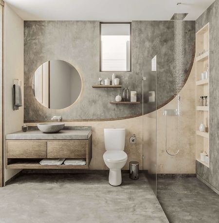 Baños: muebles, accesorios de baño cromados y canceles de vidrio templado.