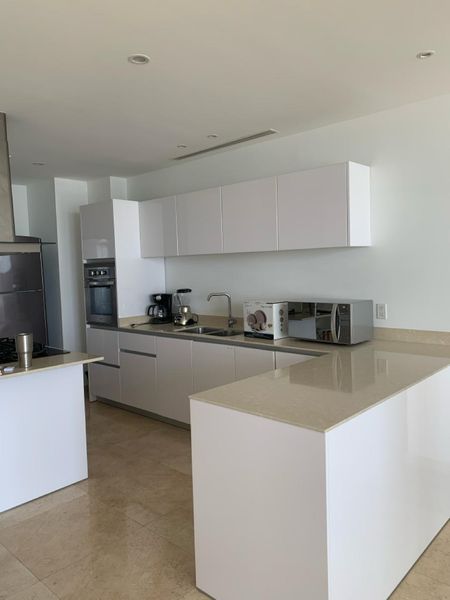 - Cocina de lujo, equipada con horno, parrilla, campana decorativa, alacena y amplios gabinetes.