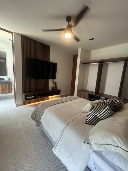 Closets vestido en recámara principal y clóset de pared en recámara secundaria.