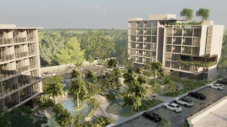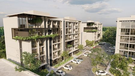 El desarrollo cuenta con 154 departamentos, 7 torres de 7 niveles cada una, brindando un estilo de vida moderno y cómodo. Las unidades están diseñadas con espacios funcionales y elegantes, con construcciones que van desde 62.7 hasta 100.8 mEetros cuadrados, con precios desde $2,284,609 hasta $3,598,747.00