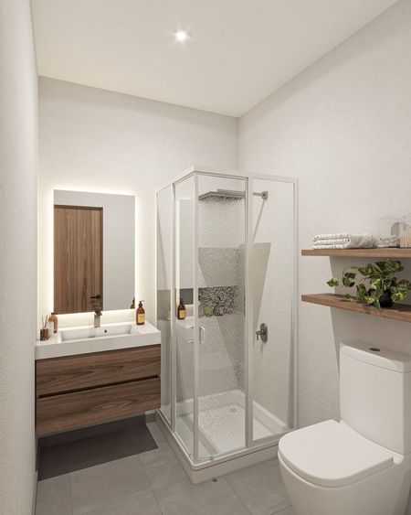 SE ENTREGA CON: Carpintería en cocina, Cancel Fijo en Baño, Calentador Eléctrico, Parrilla Eléctrica.