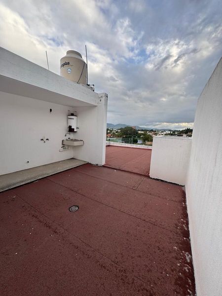 DEPARTAMENTO TIPO LOFT EN CONDOMINIO/PLANTA ARQUITECTONICA: SE ENCUENTRA EN UN SEGUNDO NIVEL QUE CUENTA CON LA SIGUIENTE DISTRIBUCION, ESCALERAS INDEPENDIENTES CON PUENTE AL INGRESO DEL INGRESO PRINCIPAL DEL DEPTO, MEDIO BAÑO, SALA, COMEDOR CON PATIO DE ILUMINACION NATURAL QUE INTEGRA LOS ESPACIOS, COCINA INTEGRAL CON ALACENA ARMARIO, RECAMARA PRINCIPAL CON CLOSET Y VESTIDOR, BAÑO COMPLETO Y TERRAZA DESCUBIERTA, SEGUNDA RECAMARA COMPLETA CON CLOSET Y BAÑO COMPLETO, VISTA AL AREA ILUMINADA DE LA SALA Y TERCERA RECAMARA CON VISTA AL BOSQUE Y BAÑO COMPLETO. ESCALERA A PLANTA DE AZOTEA, AREA DE LAVADO CUBIERTO CON PATIO DE TENDIDO Y UNA PREPARACION PARA EN UN FUTURO CONVERTIRLO EN ROOF GARDEN LE CORRESPONDE DOS CAJONES DE ESTACIONAMIENTOS DESCUBIERTOS (AREA DE COMUN EXCLUSIVO)