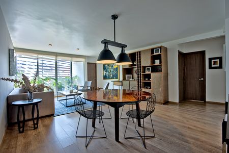 Cocina integral, sala, comedor y una amplia terraza, bodega y 2 lugares de estacionamiento cubiertos, ubicados uno frente a el otro sin que se estorben con ningún otro vecino. El edificio cuenta con seguridad y un Roof Garden.
