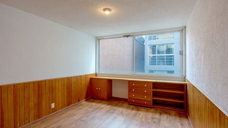 Acogedor departamento en venta en un edificio pequeño de tan solo 6 departamentos. La propiedad está ubicada en el interior del edificio, y con orientación oriente-poniente, de manera que el sol entra por las mañanas en la estancia y una de las recámaras, manteniéndolo muy silencioso, iluminado y templado todo el año. Pisos de madera. Cocina integral cerrada, con área de lavado integrada. Un baño completo da servicio a las dos recámaras, ambas con amplios clósets. La estancia es muy amplia, pudiendo habilitar un estudio abierto. Cuenta con un lugar de estacionamiento frente a otro lugar. El conserje habita en el edificio. RDV653231
