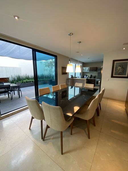 Planta baja: sala comedor, cocina abierta, terraza, baño de visitas, cuarto de lavandería, patio de tendido y cuarto de servicio con baño