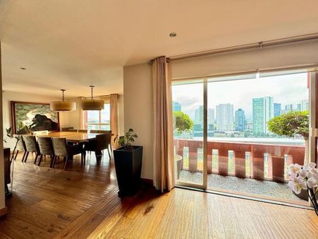 No pierdas la oportunidad de vivir en este extraordinario departamento de 257m2 de construcción, con una distribución insuperable, amplios espacios, excelentes acabados, dos cómodas recámaras cada una con balcón, baño completo y closet, acogedor recibidor con medio baño para las visitas, amplia sala comedor con un estupendo balcón, cocina cerrada, cuarto de lavado y de servicio con baño completo, dos lugares de estacionamiento y una bodega ideal para almacenar tus pertenencias.