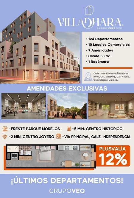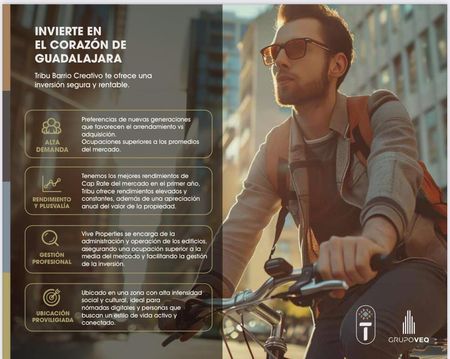 Invierte en el corazón de Guadalajara, ubicado en una zona con alta intensidad social y cultural, ideal para inversión con los mejores rendimientos y alta plusvalía.