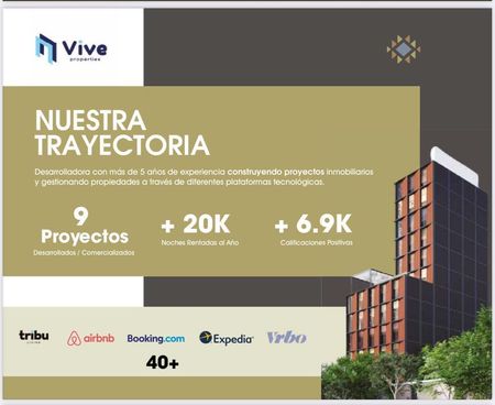 Amenidades : terraza usos múltiples, área de yoga, roof con Sky bar, lobby. Inversion segura y rentable GRUPO VEQ con más de 20 años de experiencia entregando en tiempo y forma los productos. Además tenemos 20% a la firma de contrato de compraventa y el 80% a la entrega puede ser con crédito bancario y nosotros te lo tramitamos con las mejores condiciones.