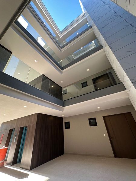 Pisos de porcelanato y duela de ingenieria en recamaras, ventanieria doble piso techo, climas de alta eficiencia seccionados.