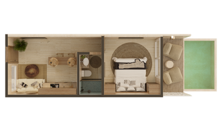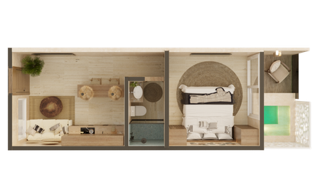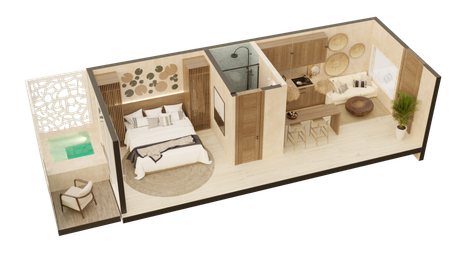 El proyecto ofrece un concepto único en donde puedes usarlo para vivir y por su naturaleza te invita a generar ingresos a través de rentas vacacionales.