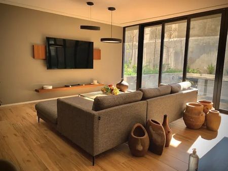 Departamento completamente equipado, en piso 2, con 2 amplias habitaciones (principal con walking closet), 2 baños completos, 93 m2 de superficie, 2 lugares de estacionamiento. 3 equipos de aire acondicionado.
