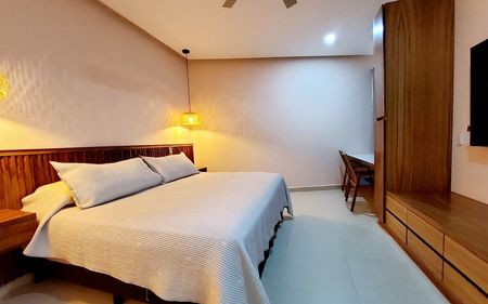 Este departamento disponible para venta se ofrece a un precio de $5,250,000 MXN. La propiedad cuenta con 62 m² con una recámara y dos baños completos, es perfecto para parejas o solteros. Está totalmente amueblado e incluye cocina equipada, aires acondicionados, una pequeña bodega y un estacionamiento techado. El condominio Taheima cuenta con dos albercas grandes con jacuzzi y tiene vigilancia 24/7, garantizando seguridad y comodidad.