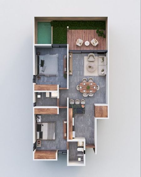 La privada está conformada por departamentos de 1 y 2 recámaras, con distribuciones eficientes, acabados modernos, terrazas o jardines según modelo, y acceso controlado 24/7. Ideal para quienes buscan vivir en el norte de Mérida con comodidad, seguridad y un estilo práctico, o para inversionistas que quieren una propiedad de alta demanda en renta.