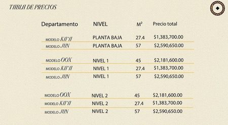 3 tipologías de departamentos de:27.4 m2 modelo KA'A