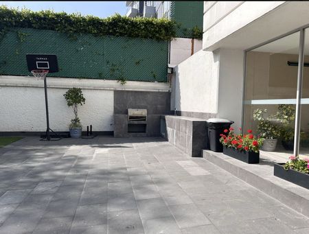 Departamento Remodelado completamente con amplios espacios, muy iluminado, 2 recamaras, 2 baños, estudio o family, cocina integral con estufa nueva, área de lavado y cuarto de servicio, Áreas comunes: Salón de eventos, terraza con asadores, jardín con juegos infantiles. Super ubicado cerca de comercios, supers, escuelas, etc.