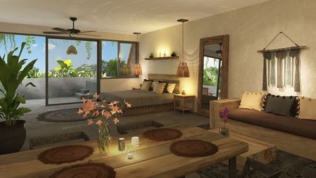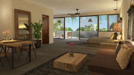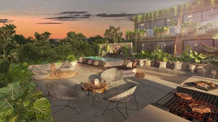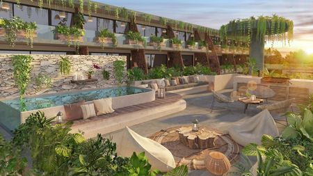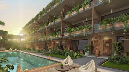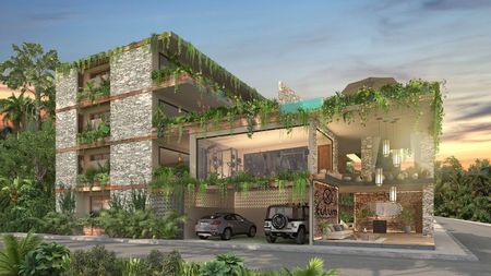 Desarollo inmobiliario de lujo a solo 6 minutos de la playa en la región de Tulum, en la península caribeña de Quintana Roo, Mexico.