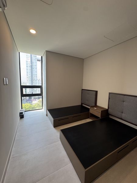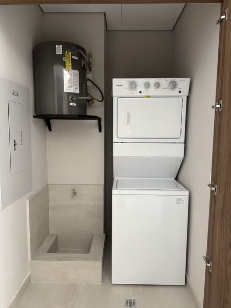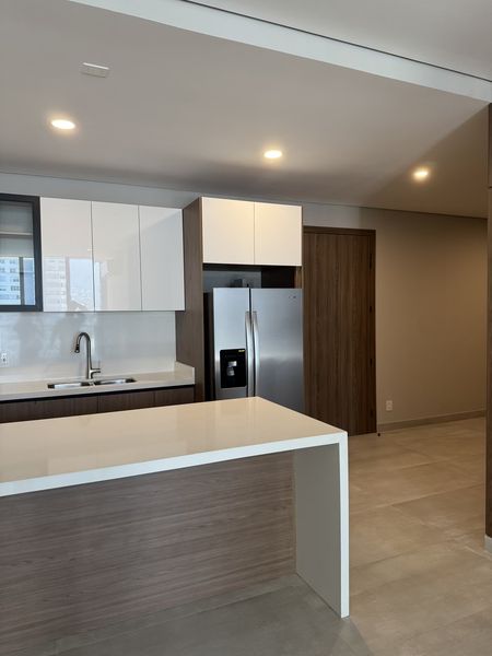 Departamento nuevo para estrenar, con acabados modernos. Cuenta con 2 recámaras, la principal con walk-in closet y baño completo, rec secundaria con closet de pared y baño completo comparte con visitas. Espacio de sala-comedor, área de estudio/oficina, cocina equipada con electrodomésticos, centro de lavado con lavadora/secadora. El departamento se encuentra equipado completamente, 3 minisplits, acabados modernos, muebles empotrados en área social, lambrines y espejos.