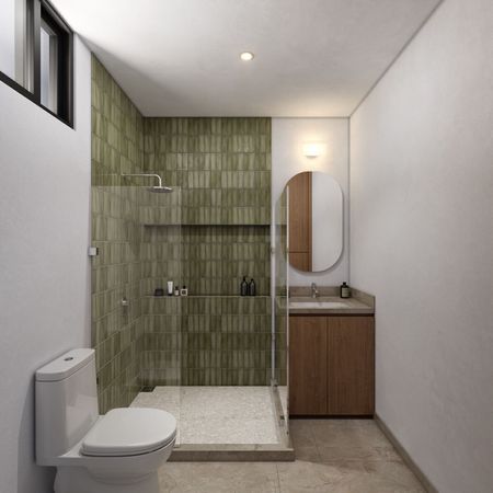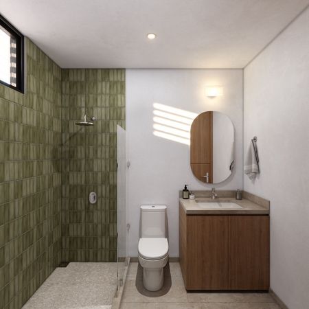 Cada recámara tiene un baño propio, diseñado con detalles de alta calidad y elegancia. La recámara principal incluye un vestidor en el baño, proporcionando un espacio exclusivo para la ropa y accesorios.