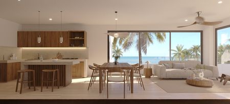 Exclusivo desarrollo inmobiliario frente al mar en el Km. 21 de la playa de San Benito, conformado por 74 departamentos de 2,3 y 4 recamaras, distribuidos en distintas topologías premium, integrados en un proyecto que respeta la vegetación local y se mimetiza con la costa.
