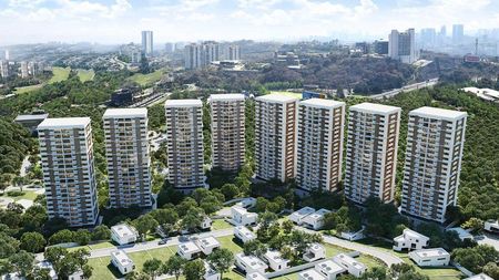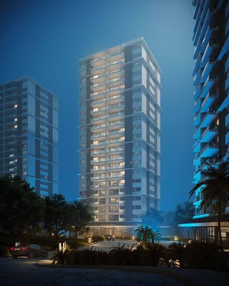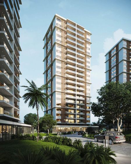 A splendid apartment development comprised of five modern towers of 20 and 25 stories, surrounded by lush green areas.