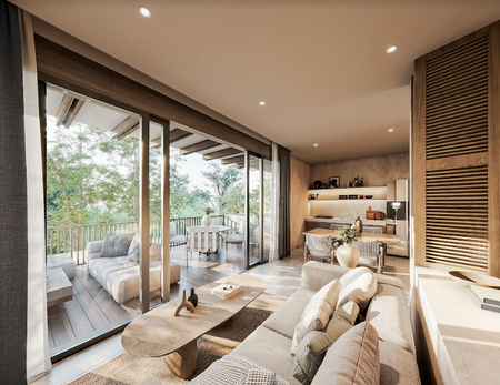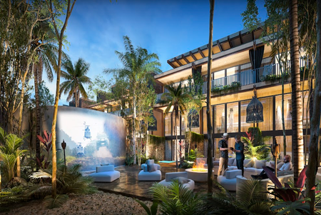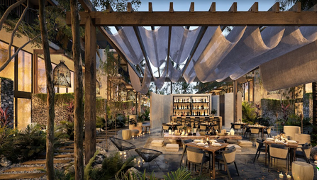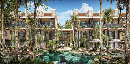 Algunas de sus amenidades son zen garden, fitness área, restaurant, jungle spa, business center., rodeado de jungla, todos los departamentos cuentan con terraza, algunos con su propio jardín y alberca. Asimismo, se ofrecen servicio completo de hotel con mantenimiento de áreas comunes, room service y concierge.