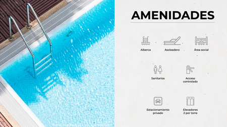 2 elevadores por torre, 24 departamentos de lujo de 2 recámaras + 4 penthouses de 3 recámaras.