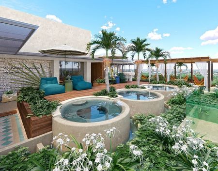 AMENIDADES: Alberca, Jardín de Yoga, Spa, Restaurante, Gimnasio, Hamacarios, Jacuzzi.