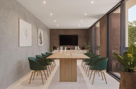 EL DESARROLO CUENTA CON AMENIDADES INTERIORES COMO SON: LOBBY, SALA DE JUNTAS, ESPACIO DE TRABAJO PRIVADO, SALON DE USOS MULTIPLES Y YOGA.