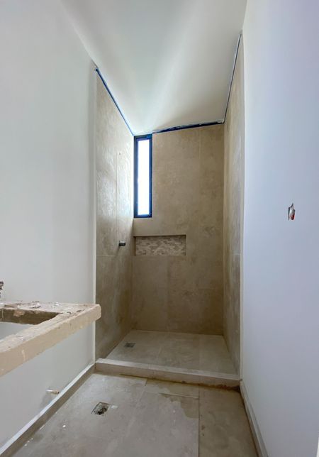 Recámara principal con espacio para closet de pared y baño con doble lavabo