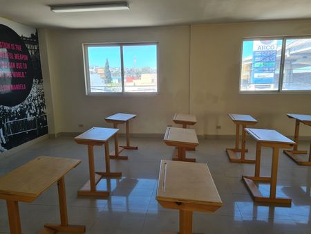 equipado como escuela 15 aulas, oficinas adminstrativas, sanitarios, patios, instalaciones de seguridad,