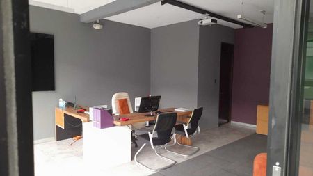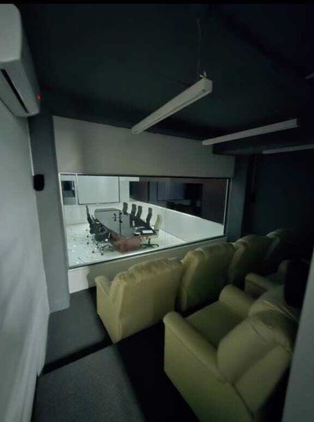 En PB cuenta con linea telefónica, cableado de voz, luz trifásica, transformador y cctv, recepción, área para vigilancia, 2 salas de juntas, cuarto de grabación, 14 estaciones de trabajo, 3 oficinas privadas, comedor, cuarto de maquinas y almacén.