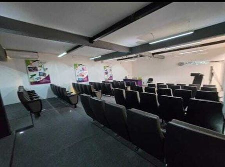Segundo piso con auditorio 90 butacas, oficina de dirección con sala de juntas para 18 personas y baño privado, área de trabajo con 20 estaciones y 7 oficinas privadas.