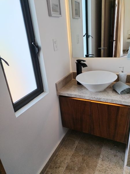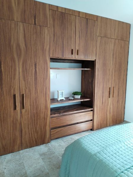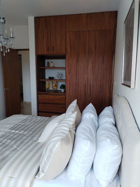 Incluye: Piso de mármol, cocina integral con cubierta de granito, amplios closets en todas las recámaras y vestidor, canceles de cristal templado, espejos en baños, carpintería de puertas madera de Parota.