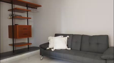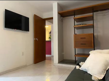 - Cuarto de TV con clóset abierto y sofá cama (funciona como tercera recámara)